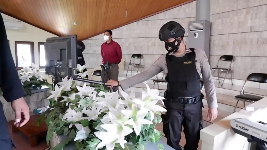 Dalam pantauan di lokasi gereja Isa Almasih Desa Panjunan, Kota Kudus, sejumlah aparat kepolisian menggunakan metal detektor dan kaca pantul untuk mengecek kondisi gereja. Sementara anjing pelacak menyisir luar area gedung gereja.