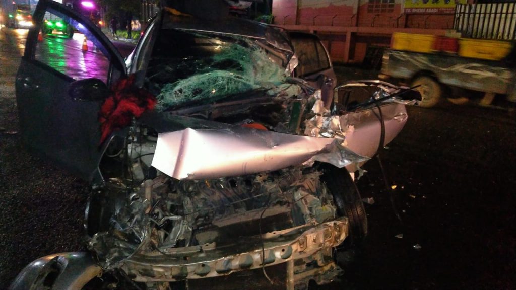Kanit Laka lantas Polres Kudus Ipda Firman Abit mengatakan, kecelakaan terjadi sekitar pukul 03.00 WIB. Kecelakaan bermula ketika mobil Toyota Yaris yang dikemudikan Deri Setya Arnanda (27) warga RT 04 RW III Desa Kramat, Kota, Kudus berjalan dari arah barat ke timur dengan kecepatan sedang.