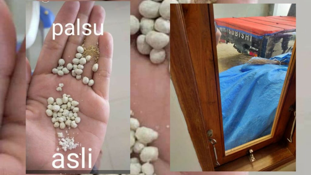 ”Pelaku langsung pergi dan tergesa-gesa, bahkan sempat hamper menabrak anak kecil, jika itu pupuk asli tentu tidak panik seperti itu,” imbuhnya.