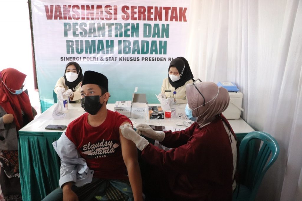 Vaksinasi di pesantren adalah merupakan salah satu upaya mendukung terbentuknya herd immunity. Untuk itu, program vaksinasi merdeka terus berjalan tak hanya di atu pesantren saja.
